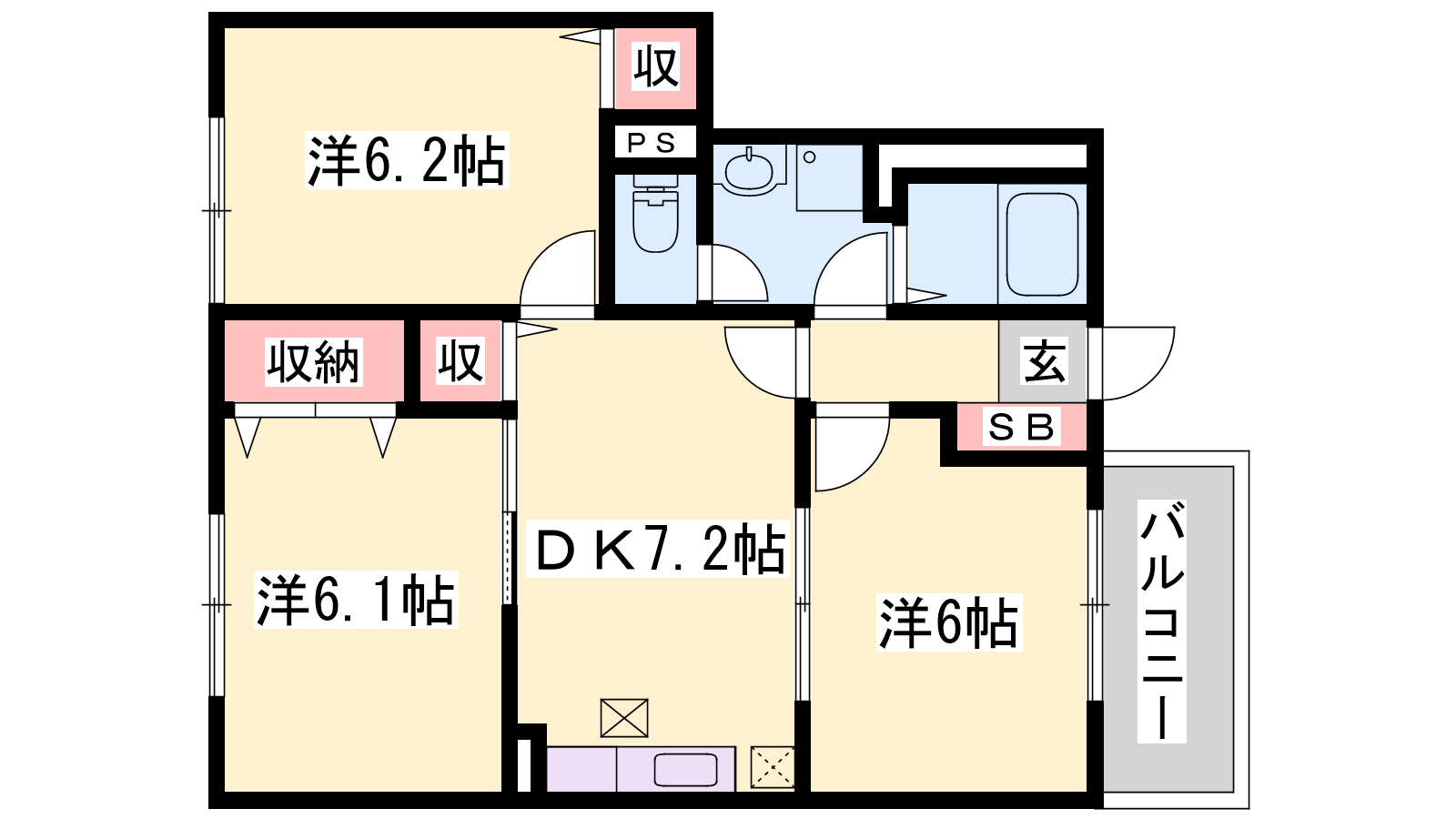 - DK7.2帖、洋室6.2帖、洋室6.1帖、洋室6帖