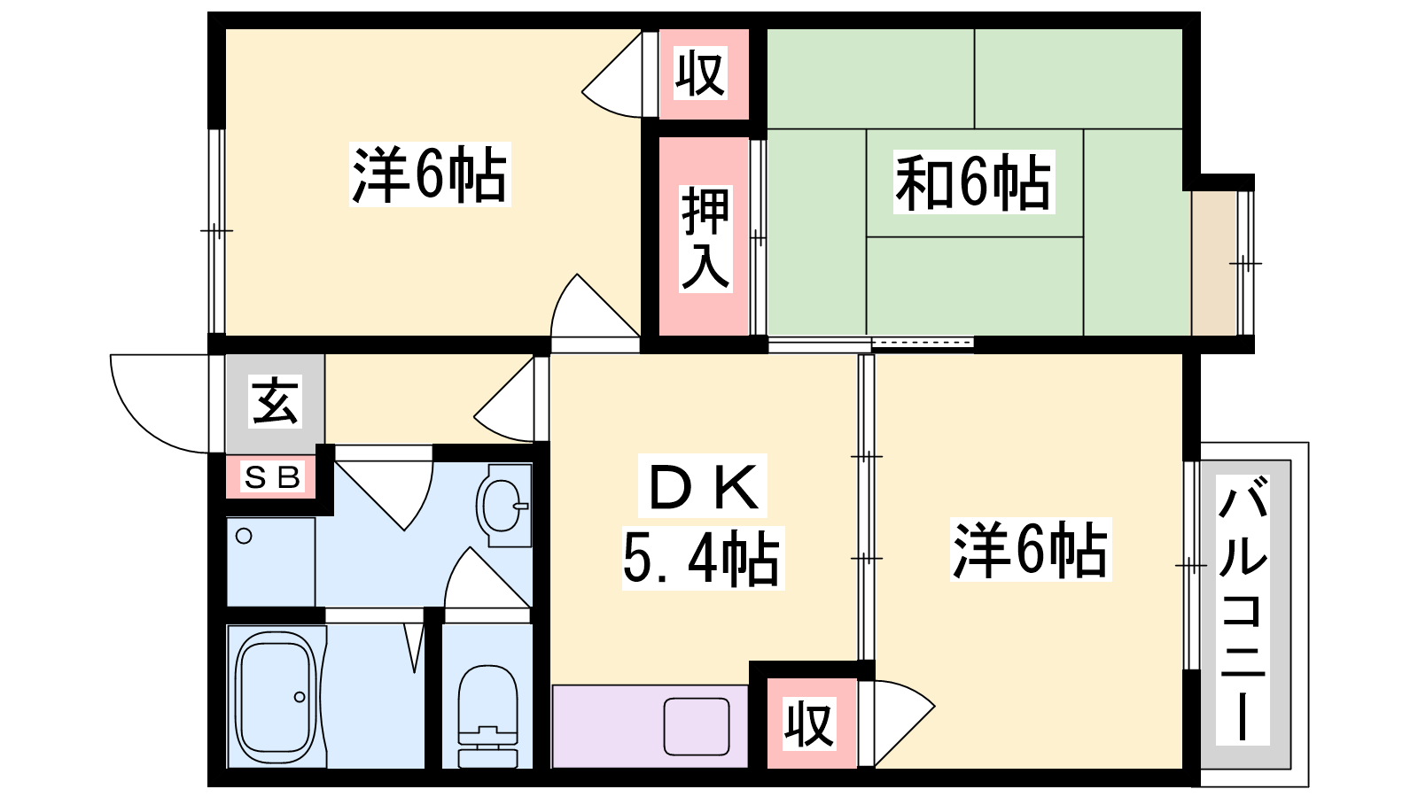 - DK5.4帖、洋室6帖、洋室6帖、和室6帖