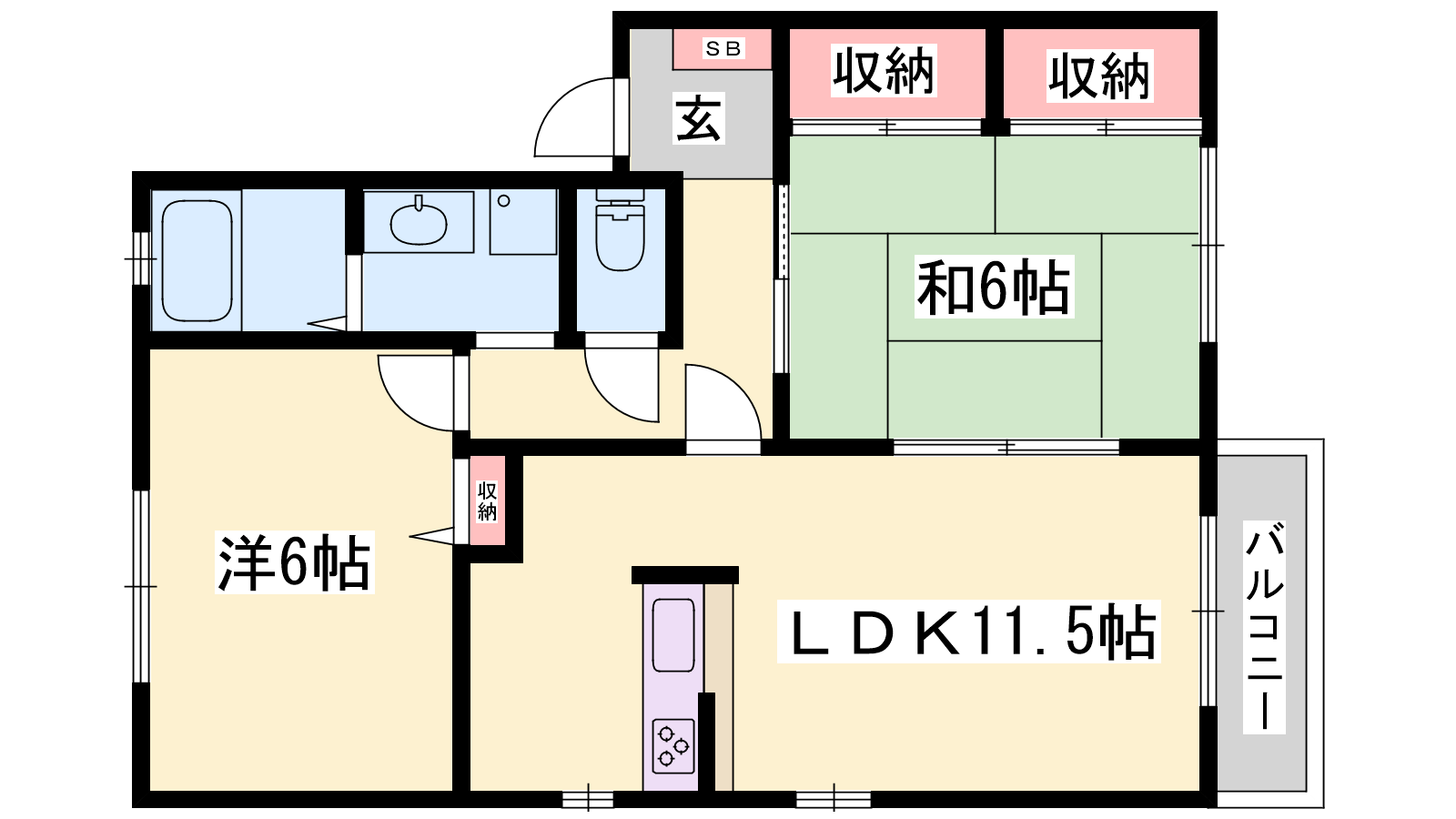 - LDK11.5帖、和室6帖、洋室6帖
