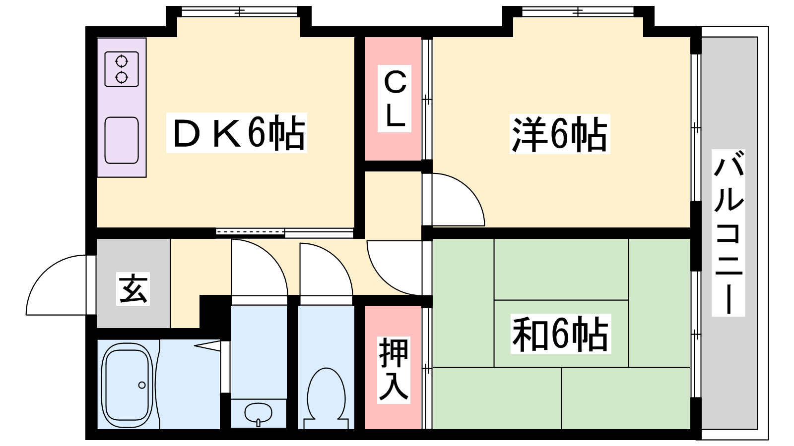 - DK6帖、洋室6帖、和室6帖