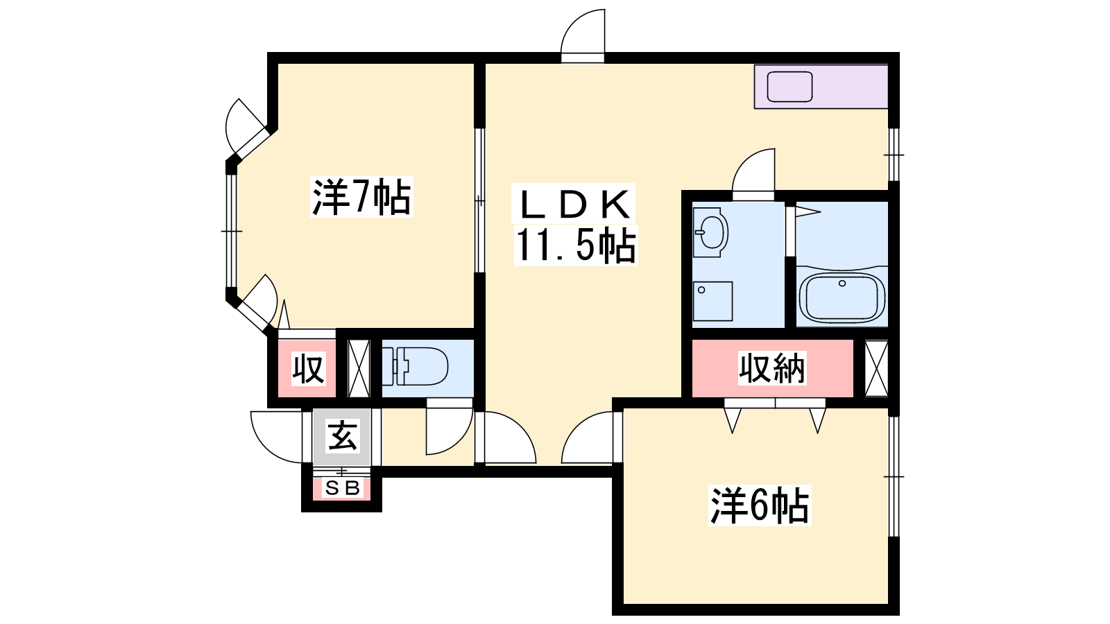 - LDK11.5帖、洋室7帖、洋室6帖