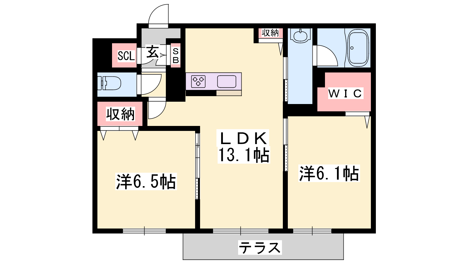 - LDK13.1帖、洋室6.1帖、洋室6.5帖