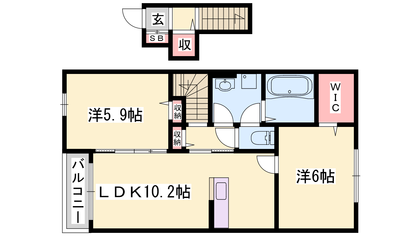 - LDK10.2帖、洋室6帖、洋室5.9帖