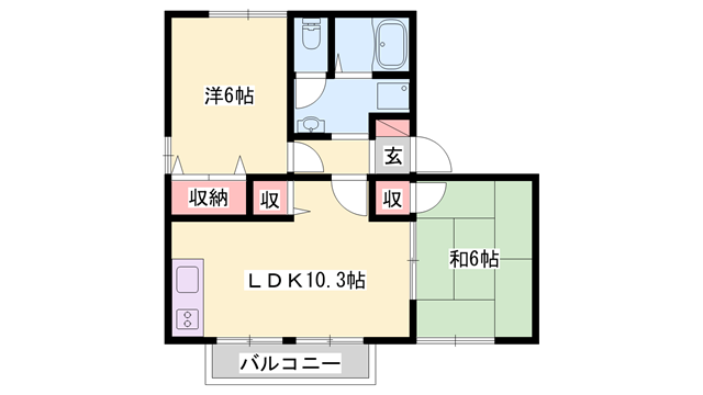 - LDK10.3帖、洋室6帖、和室6帖