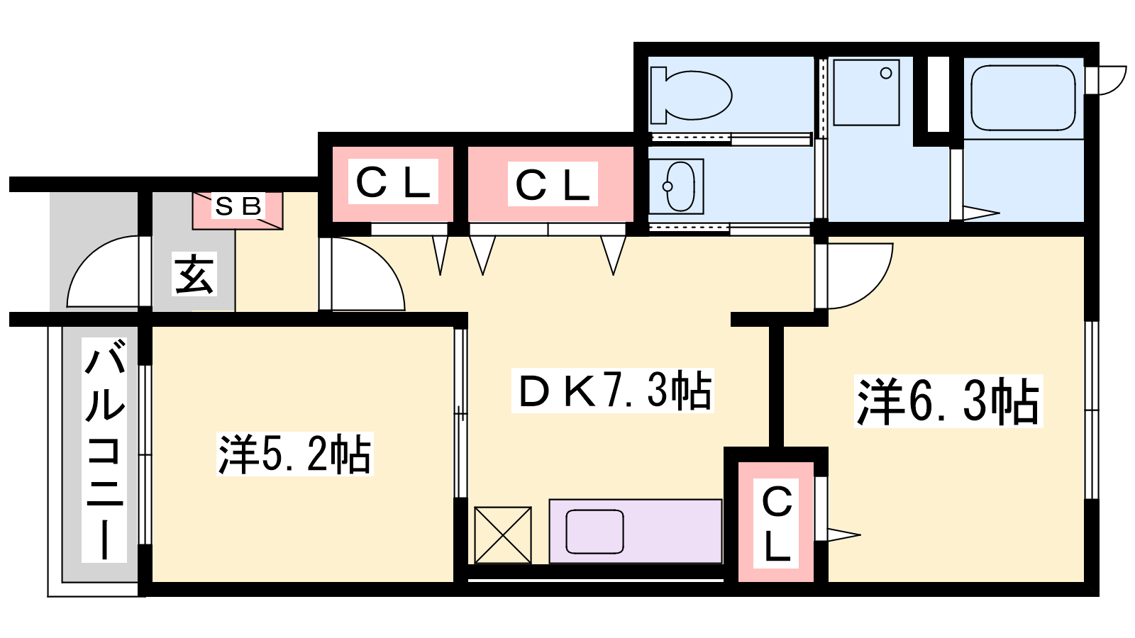 - DK7.3帖、洋室6.3帖、洋室5.2帖