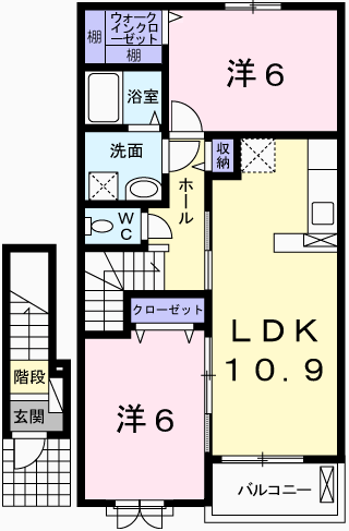 - LDK10.9帖、洋室6帖、洋室6帖