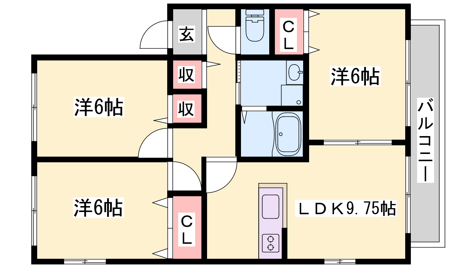 - LDK9.75帖、洋室6帖、洋室6帖、洋室6帖