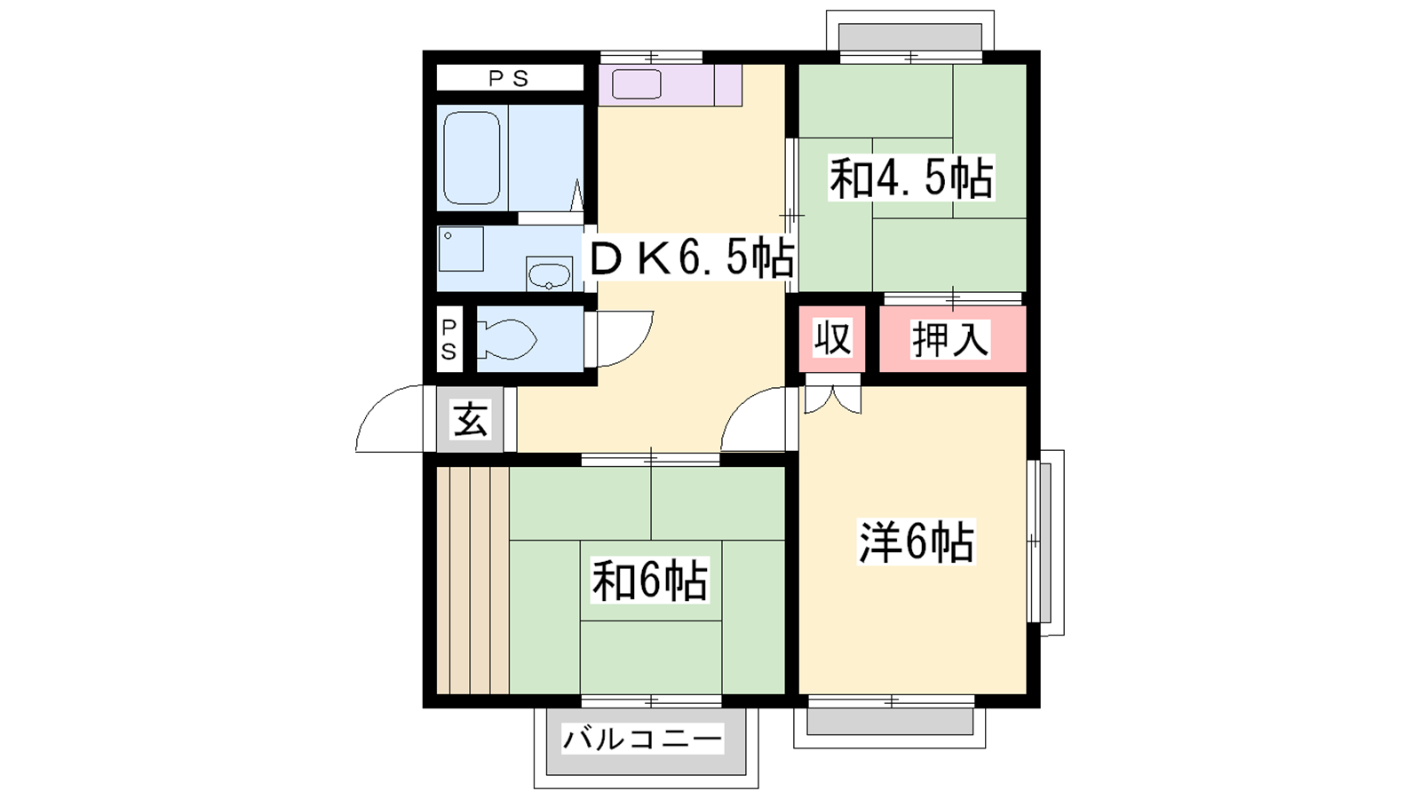 - DK6.5帖、洋室6帖、和室6帖、和室4.5帖