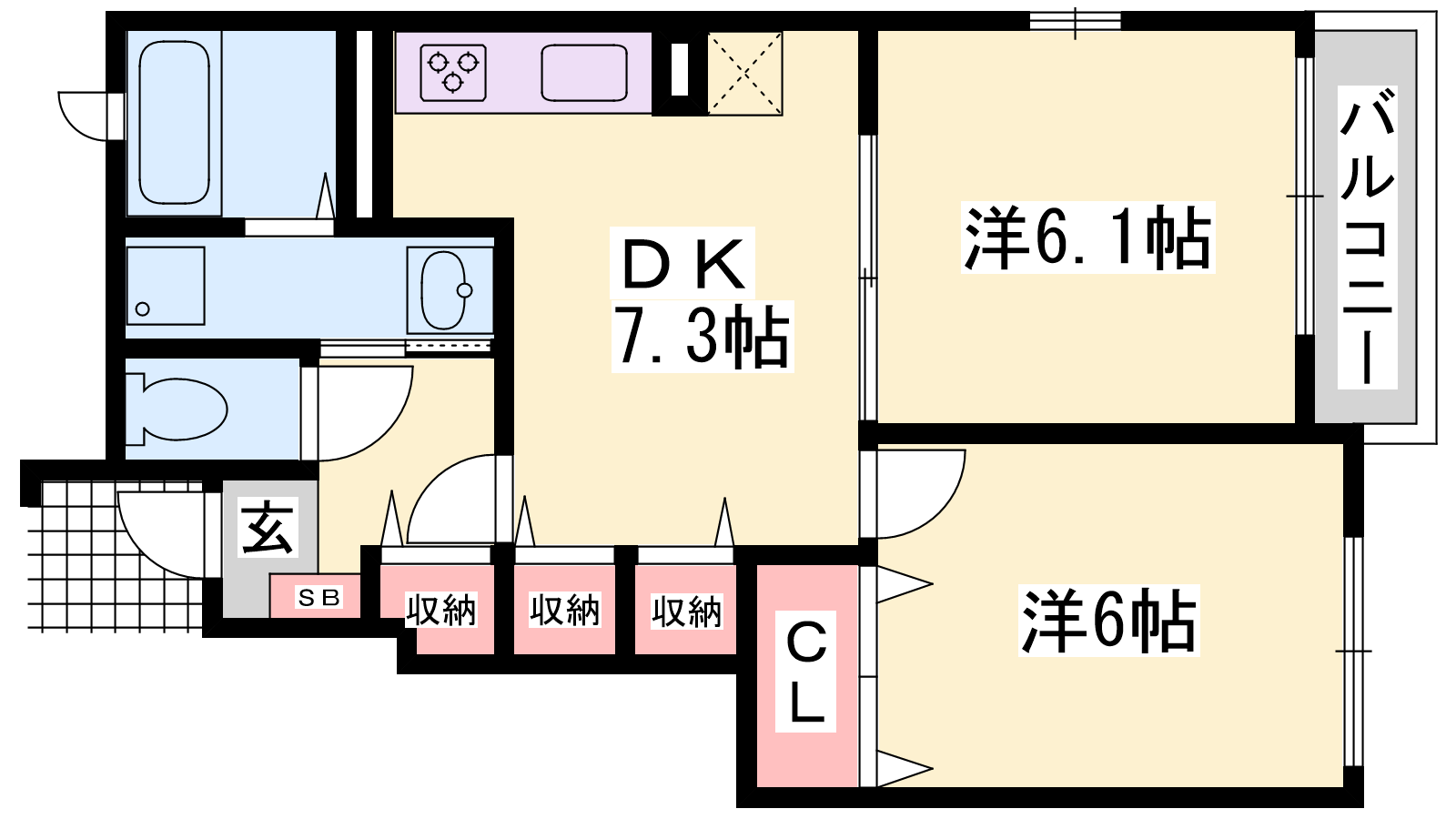 - DK7.3帖、洋室6.1帖、洋室6帖