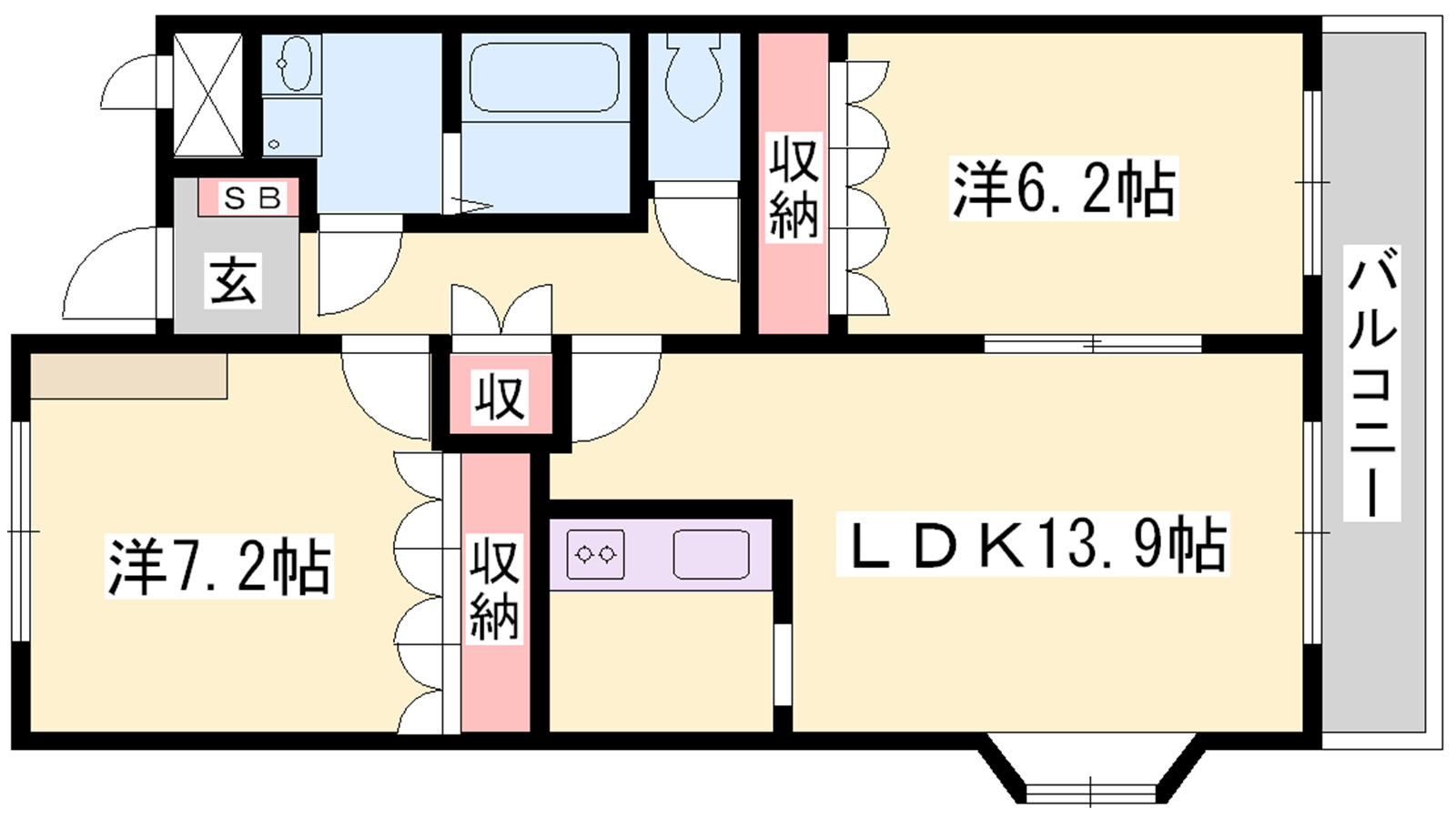 - LDK13.9帖、洋室7.4帖、洋室6.2帖