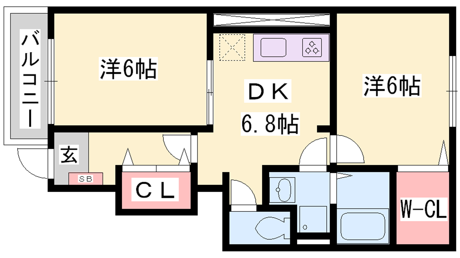 - DK6.8帖、洋室6帖、洋室6帖