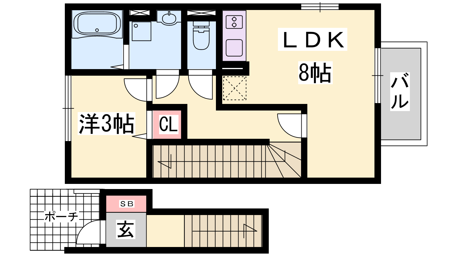 - LDK8帖、洋室3帖