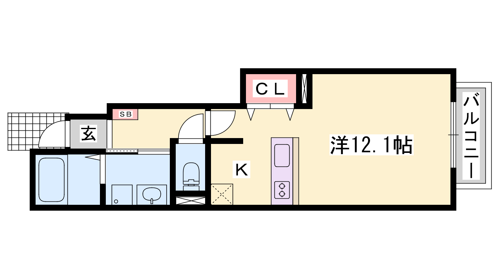 - K2帖、洋室12.1帖