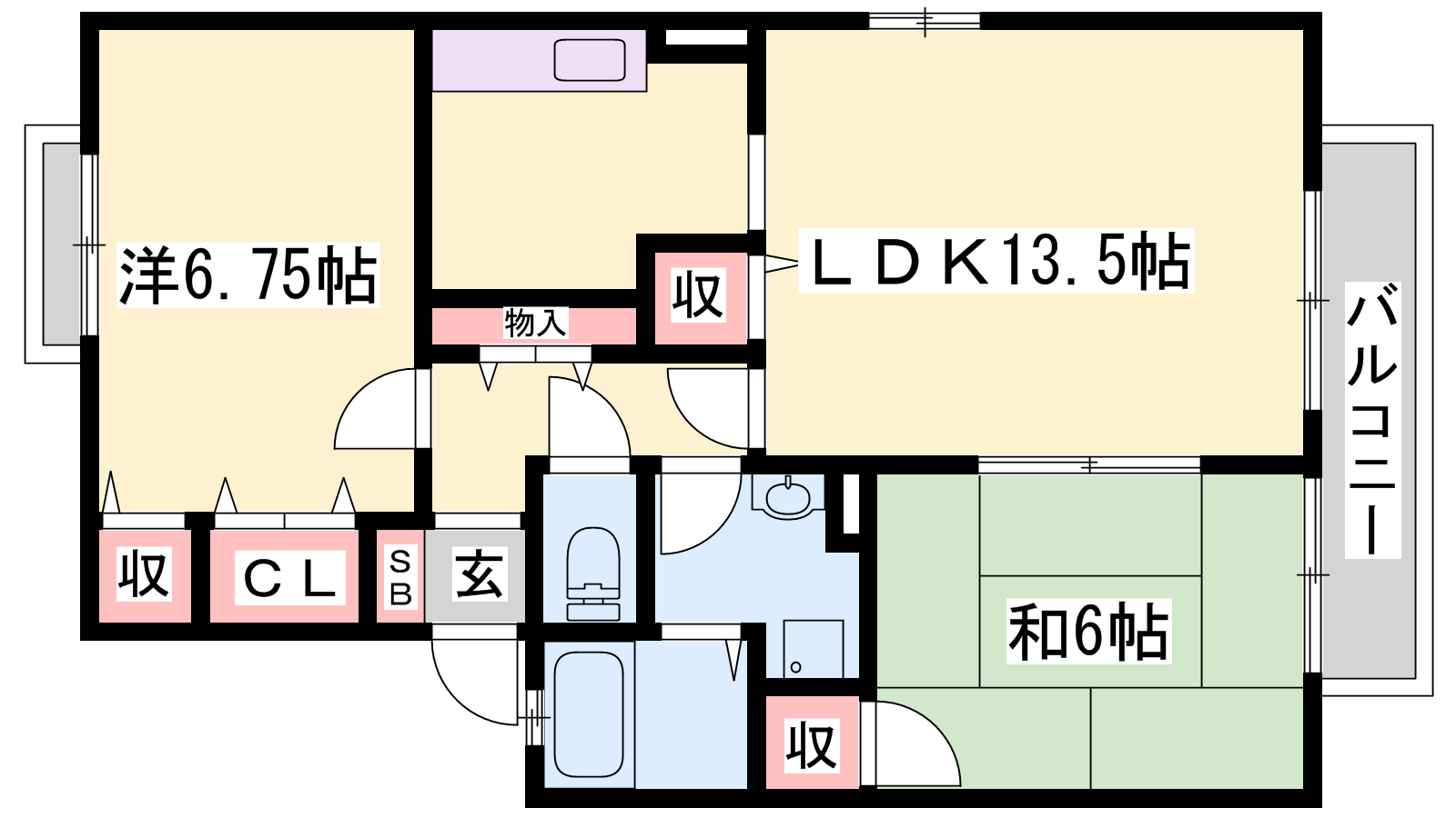 - LDK13.5帖、洋室6.75帖、和室6帖