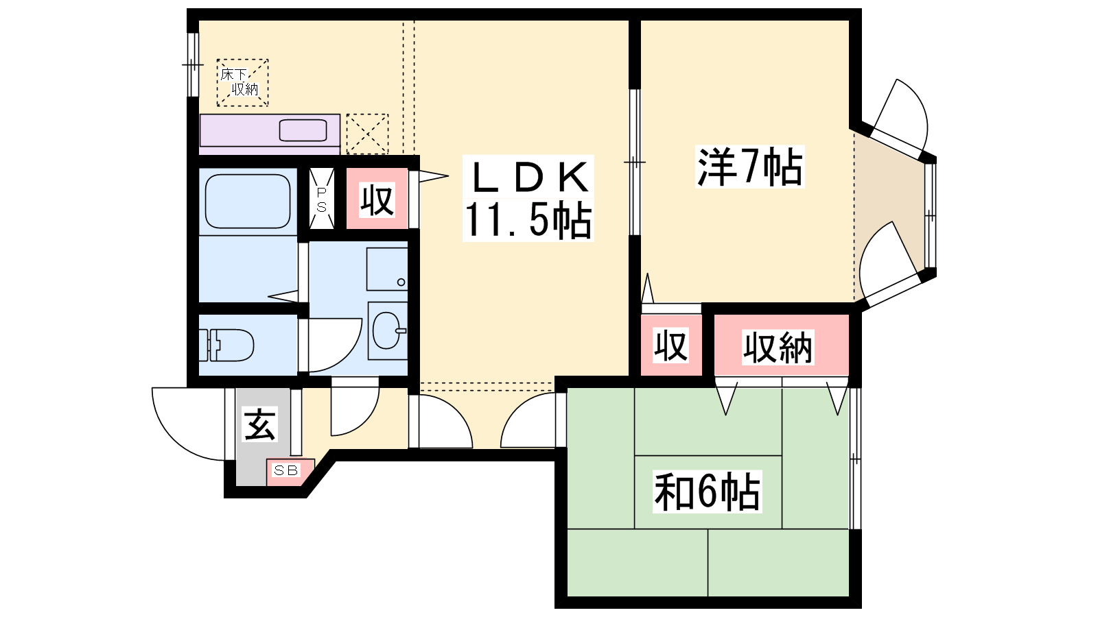 - LDK11.5帖、洋室7帖、和室6帖