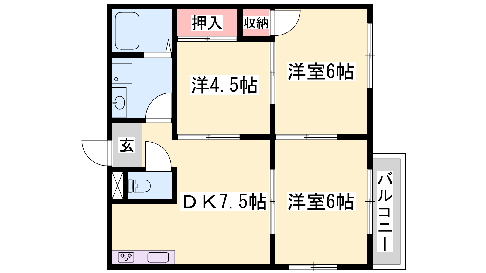 - DK7.5帖、洋室6帖、洋室6帖、洋室4.5帖