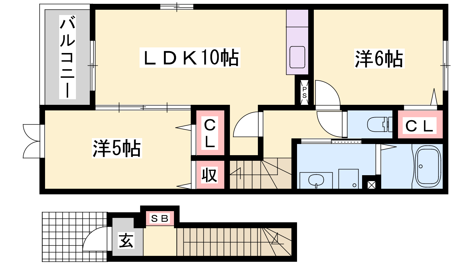 - LDK10帖、洋室6帖、洋室5帖