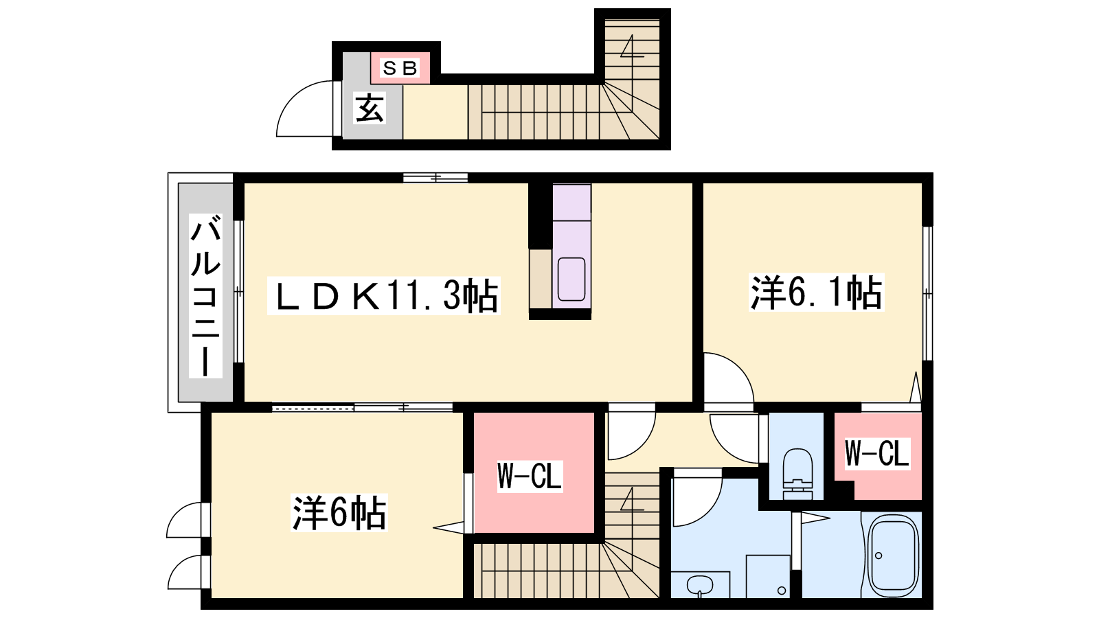 - LDK11.3帖、洋室6.1帖、洋室6帖