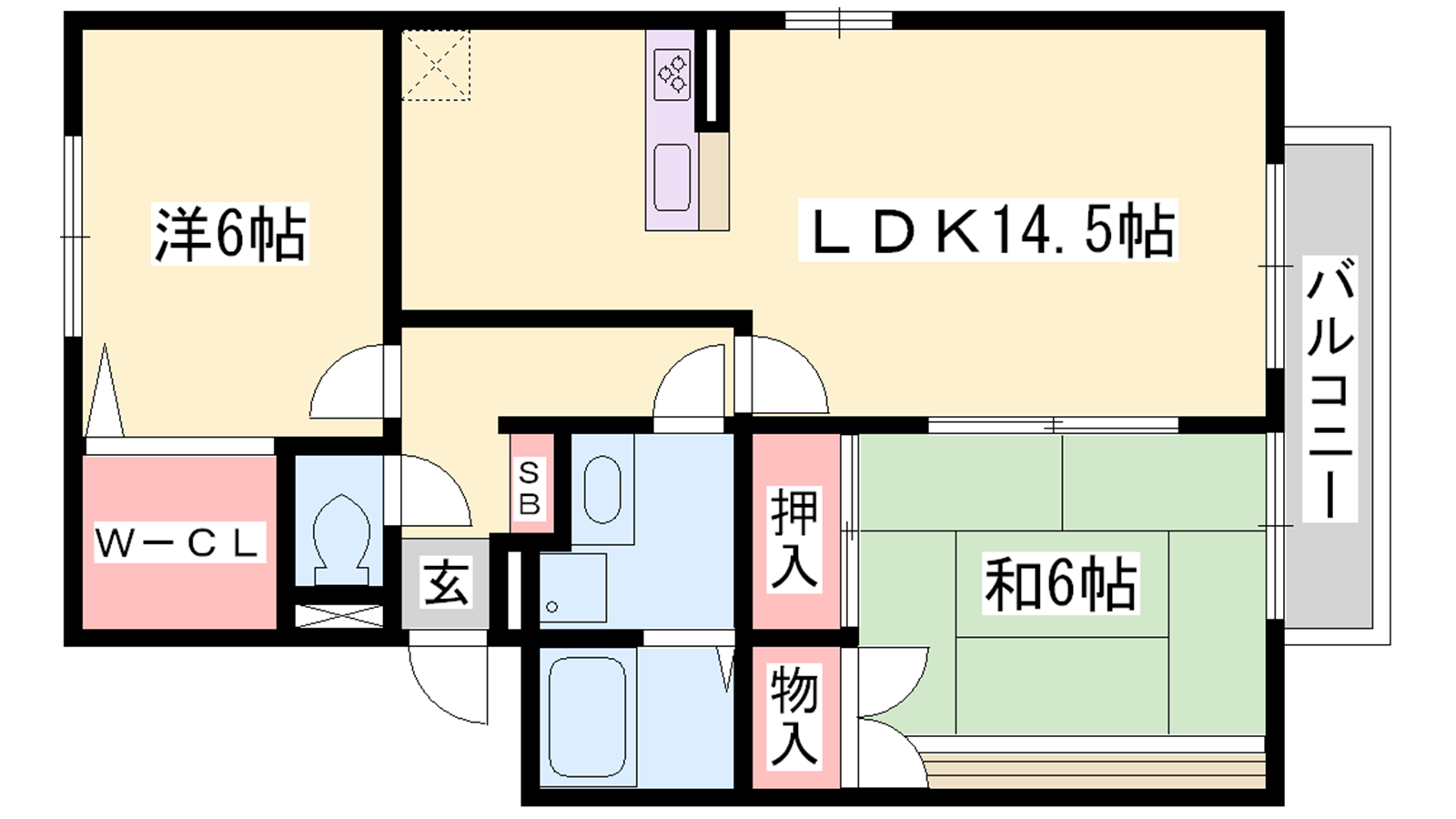 - LDK14.5帖、洋室6帖、和室6帖