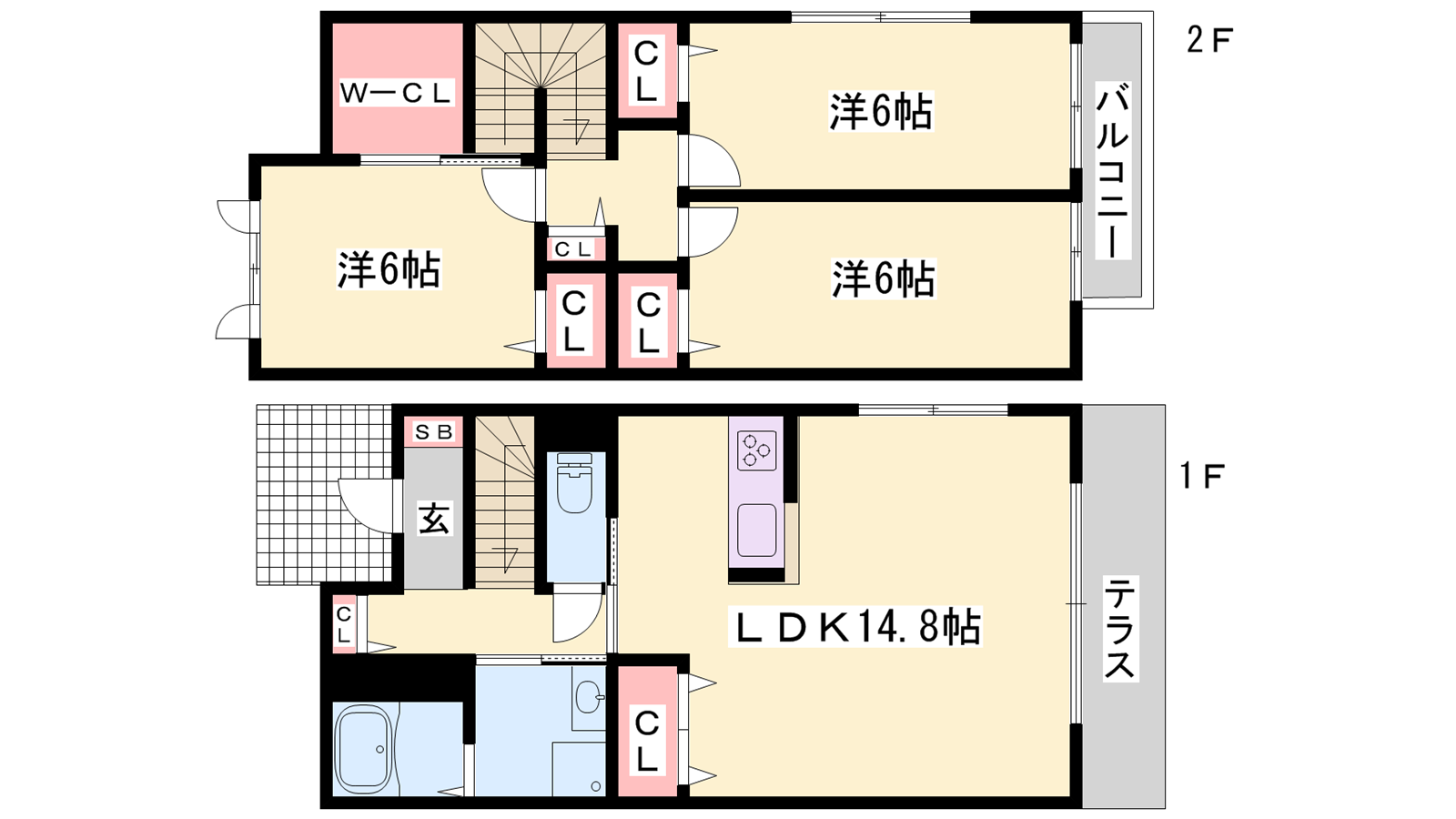 - LDK14.8帖、洋室6帖、洋室6帖、洋室6帖
