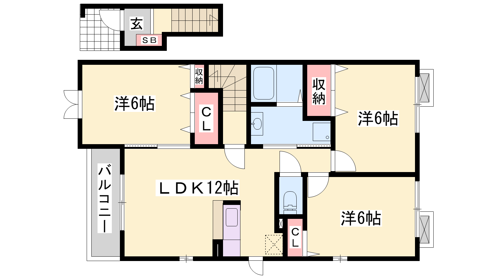 - LDK12帖、洋室6帖、洋室6帖、洋室6帖