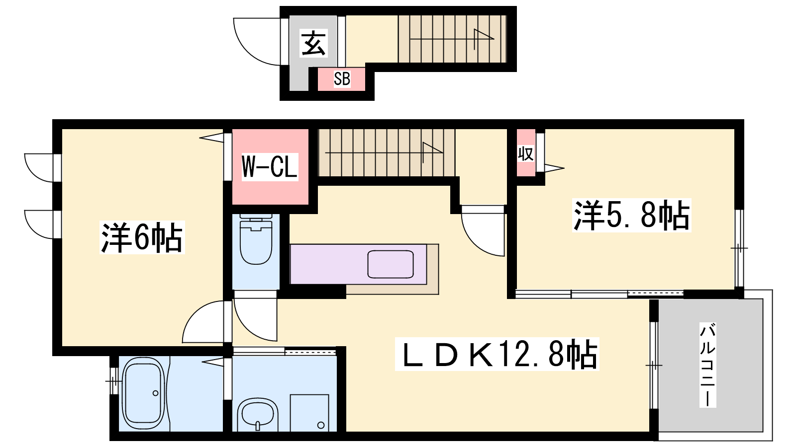 - LDK12.8帖、洋室6帖、洋室5.8帖
