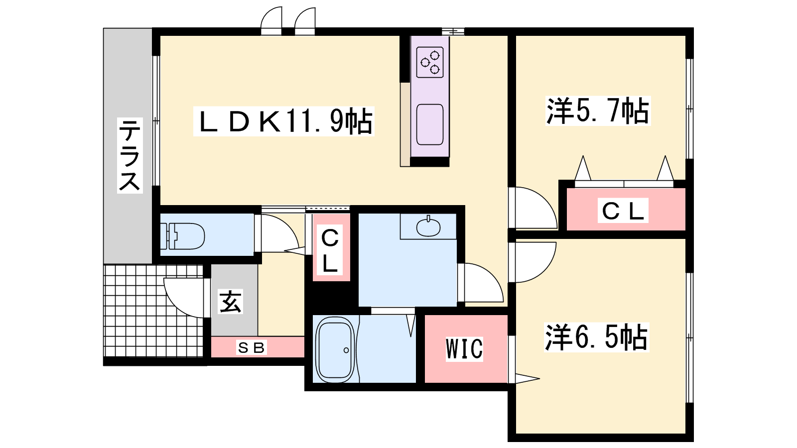 - LDK11.9帖、洋室6.5帖、洋室5.7帖
