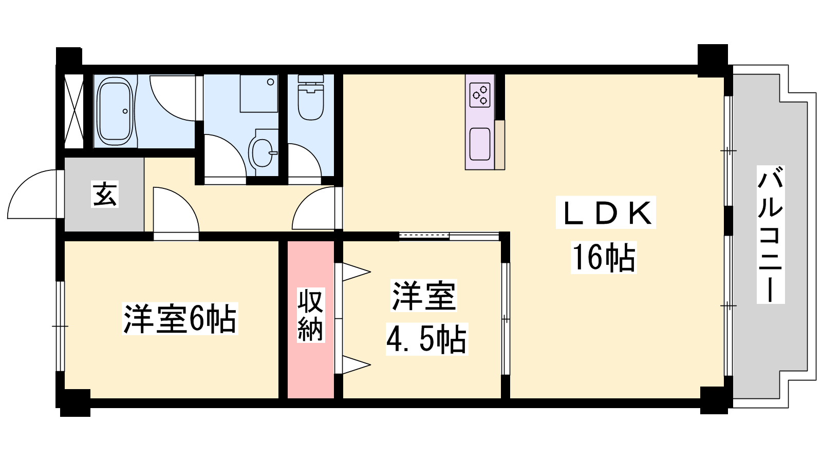 - LDK16帖、洋室6帖、洋室4.5帖