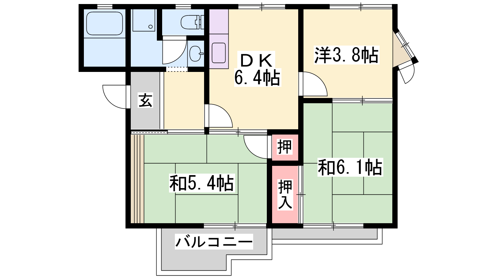 - DK6.4帖、洋室3.8帖、和室6.1帖、和室5.4帖
