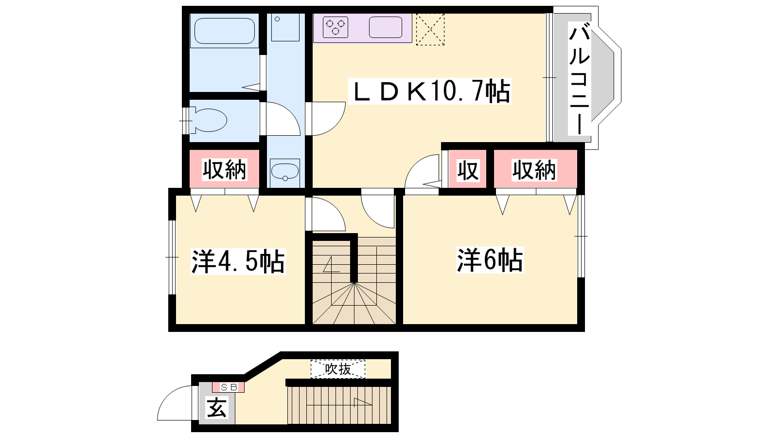 - LDK10.7帖、洋室6帖、洋室4.5帖