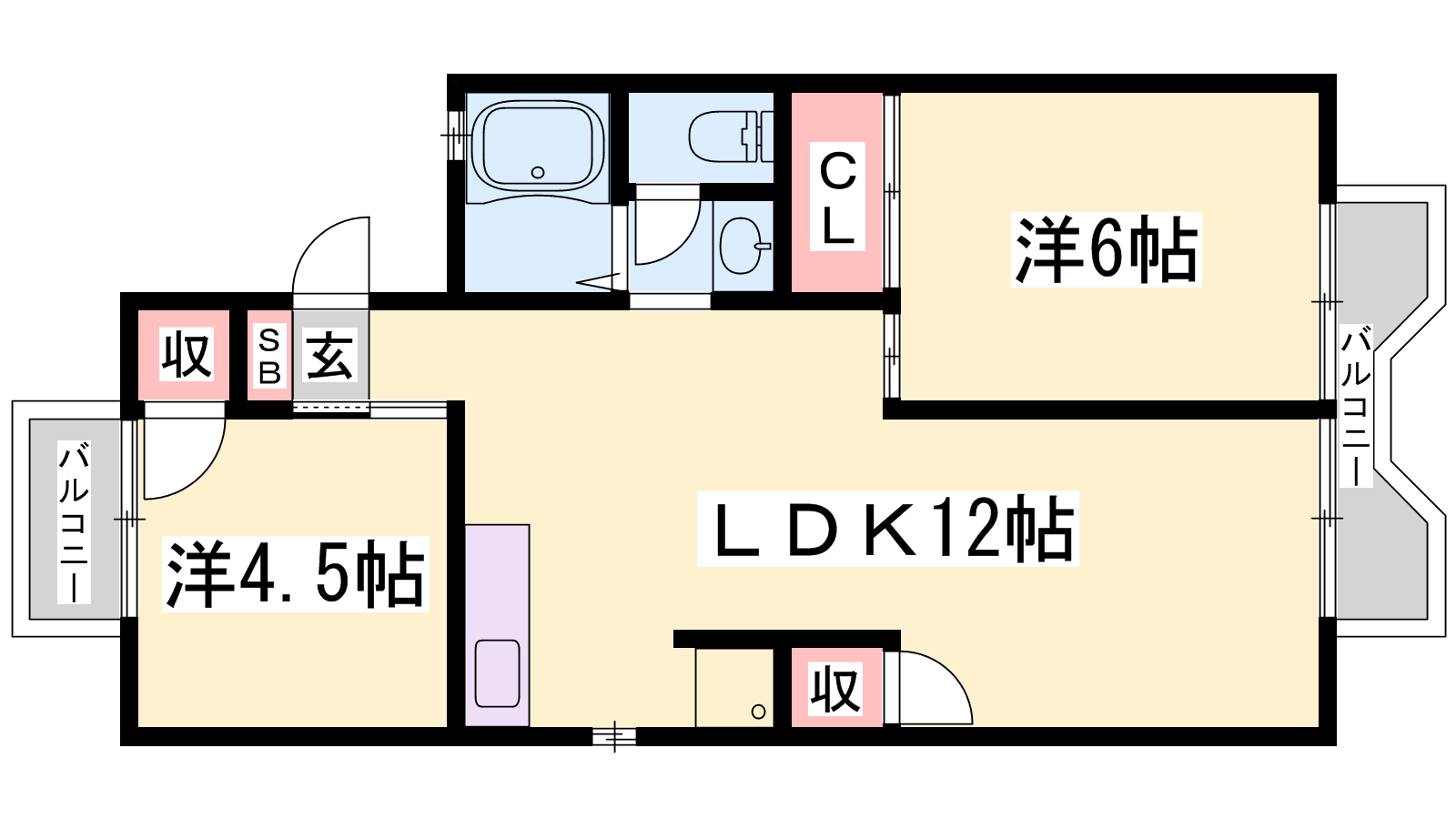 - LDK12帖、洋室6帖、洋室4.5帖