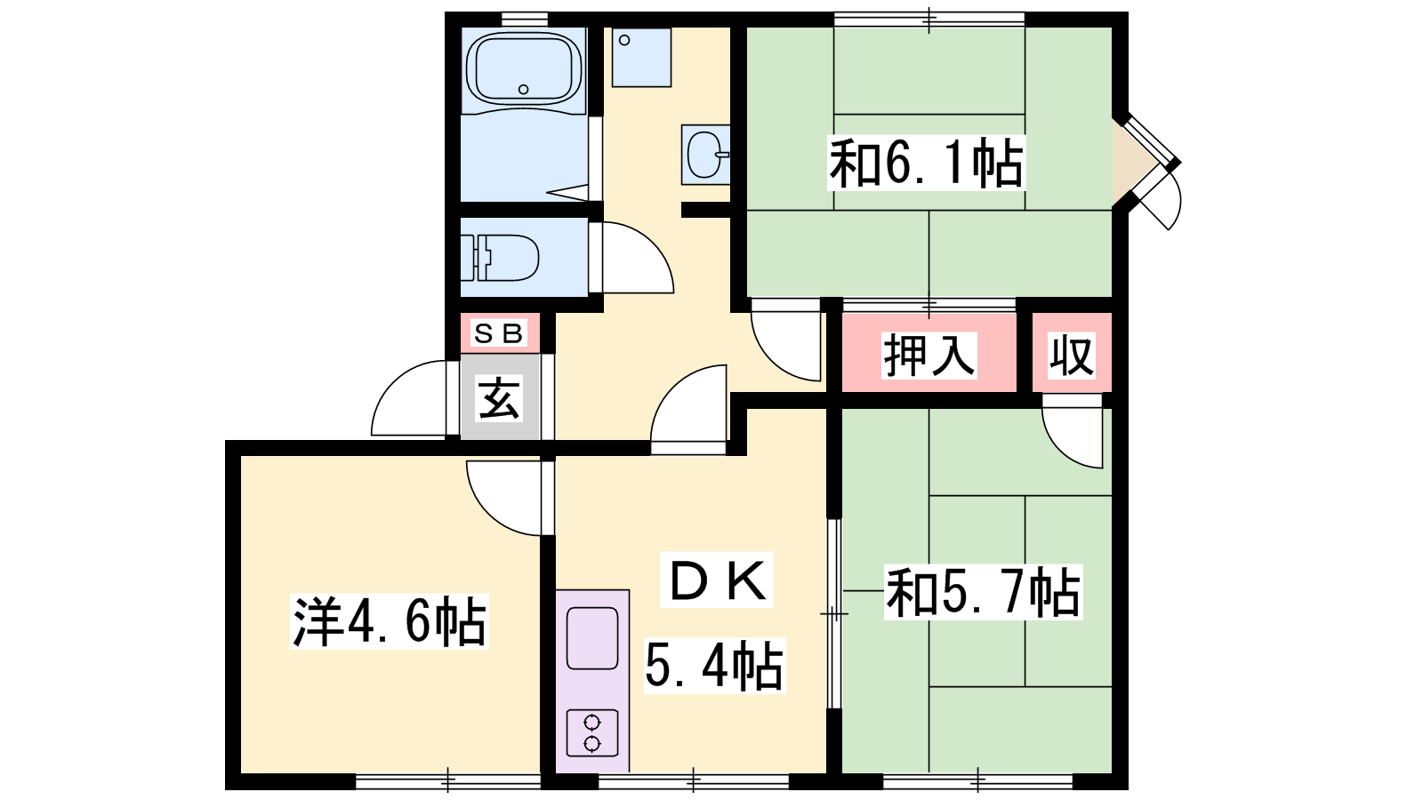 - DK5.4帖、洋室4.6帖、和室6.1帖、和室5.7帖