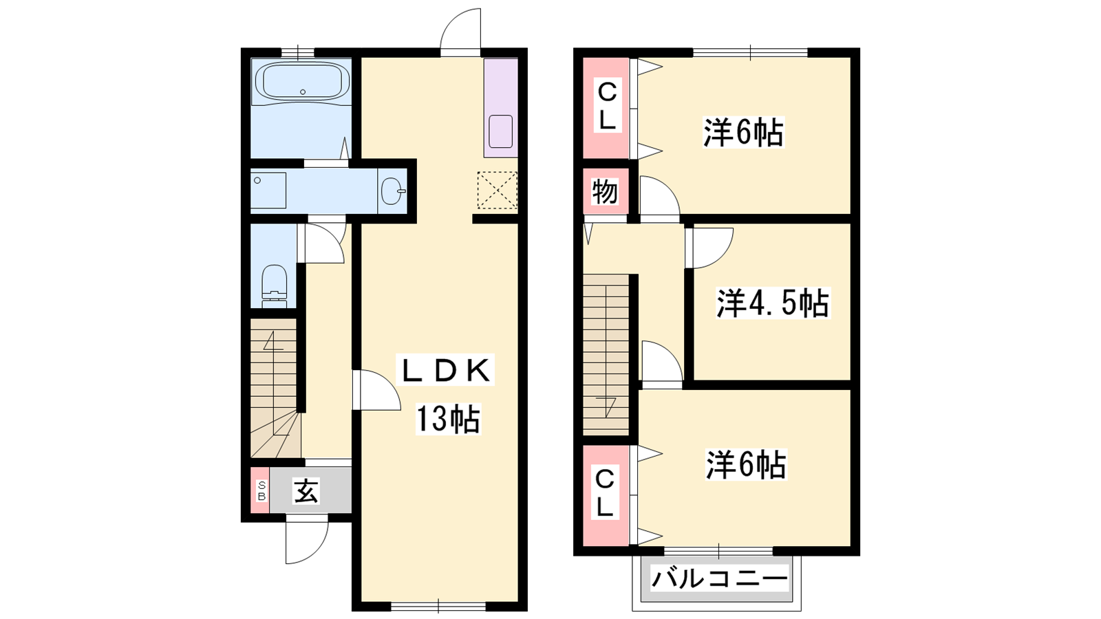 - LDK13帖、洋室6帖、洋室4.5帖、洋室6帖