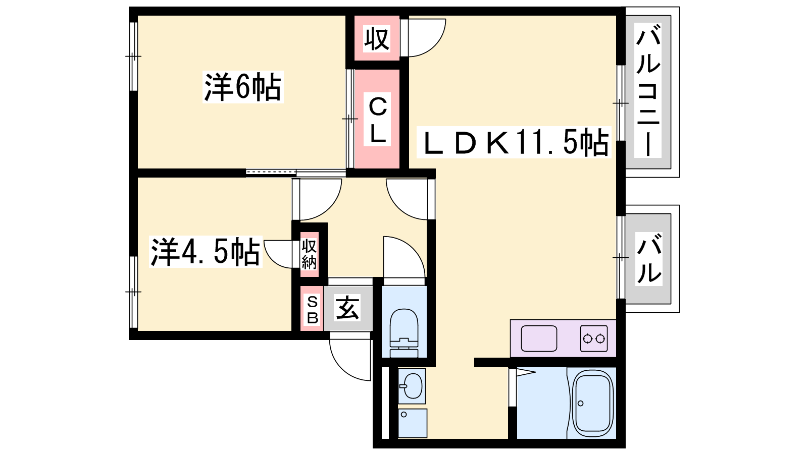 - LDK11.5帖、洋室4.5帖、洋室6帖