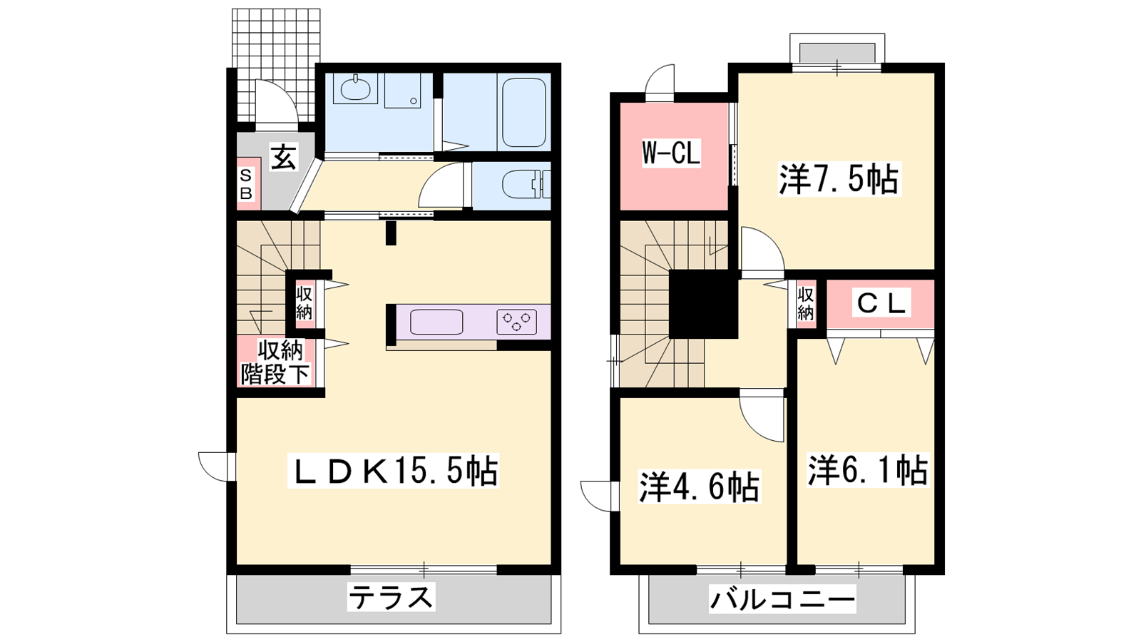 - LDK15.5帖、洋室7.5帖、洋室6.1帖、洋室4.6帖