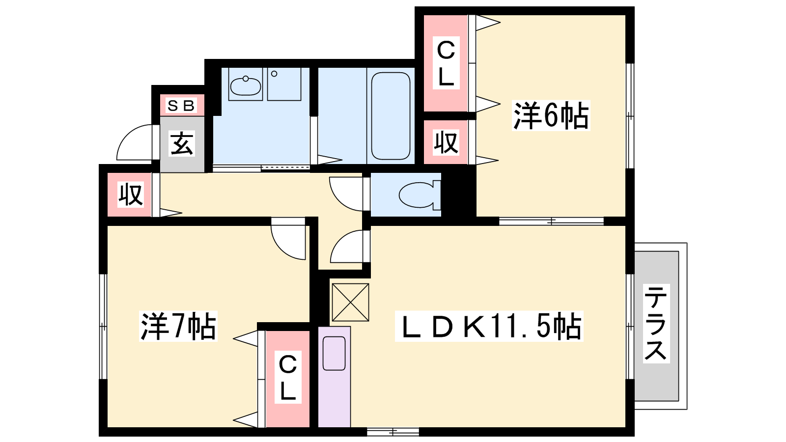 - LDK11.5帖、洋室7帖、洋室6帖