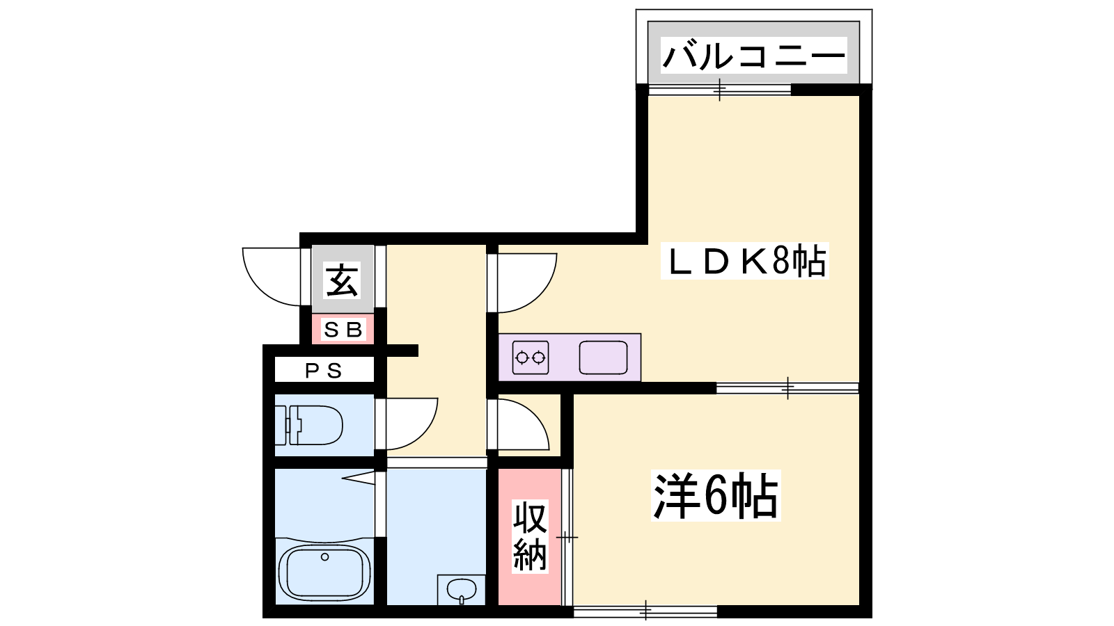 - LDK8帖、洋室6帖
