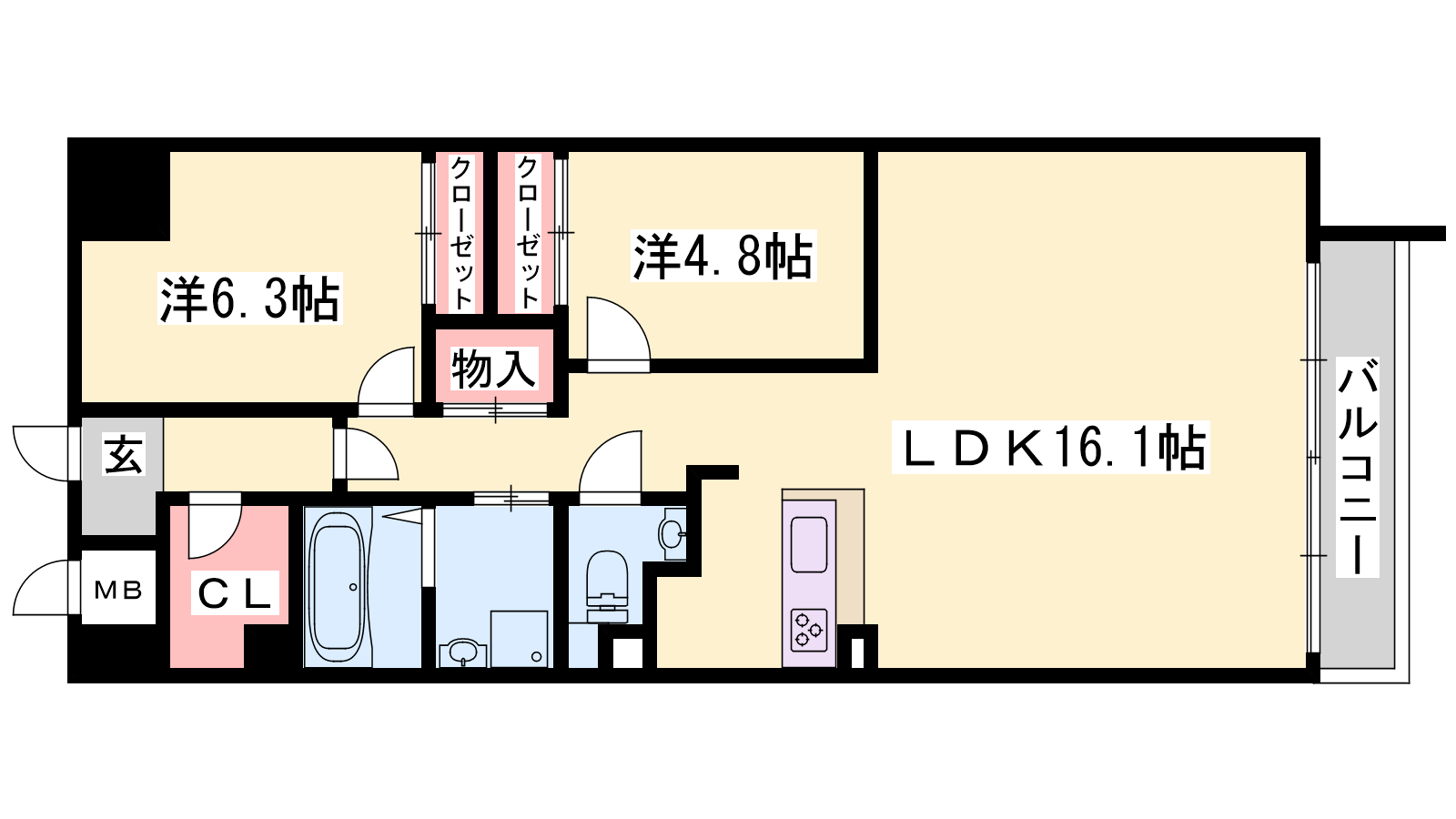 - LDK16.1帖、洋室6.3帖、洋室4.8帖