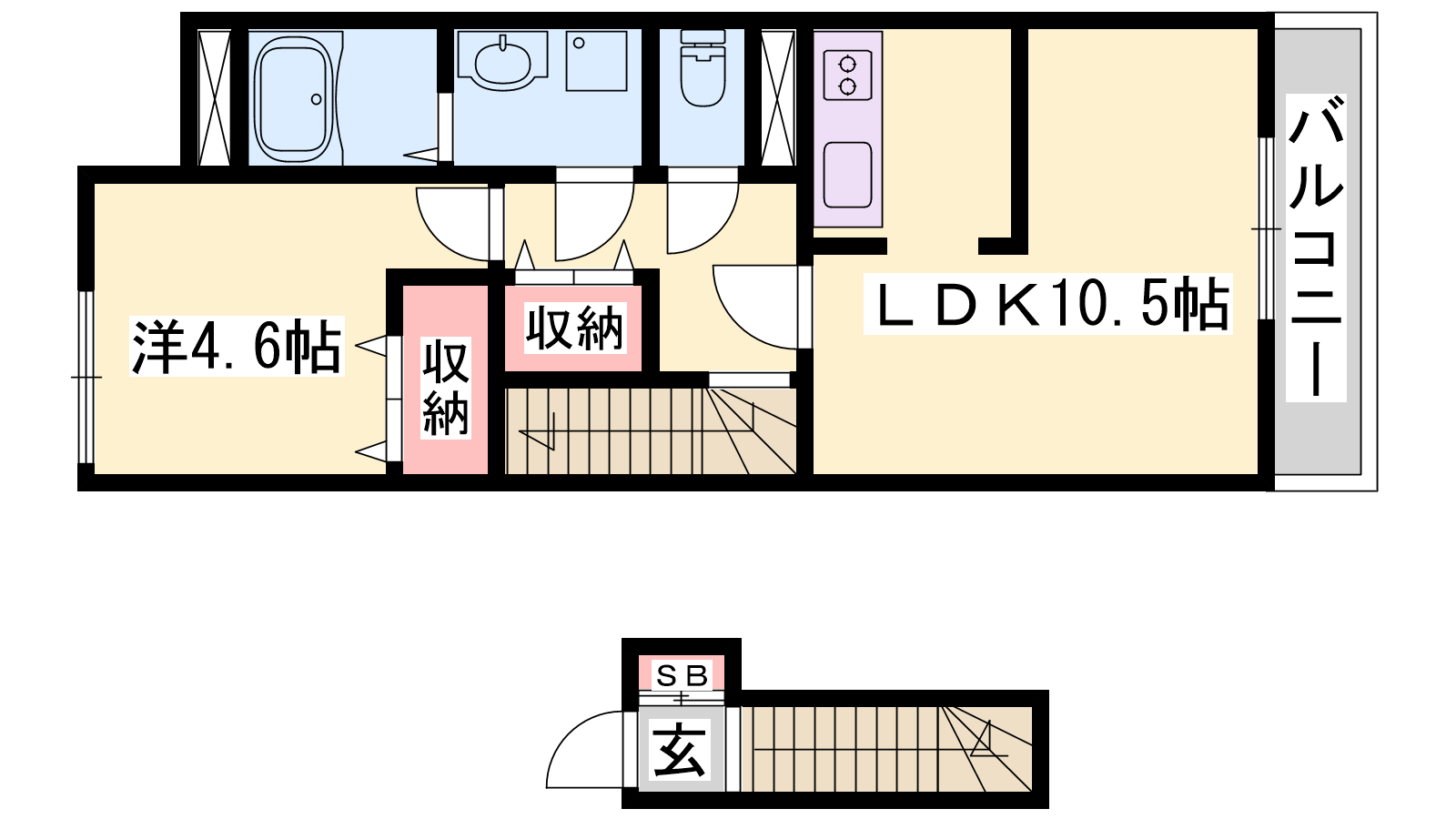 - LDK10.5帖、洋室4.6帖