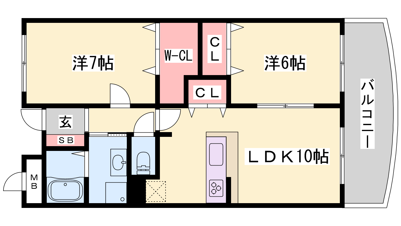 - LDK10帖、洋室7帖、洋室6帖