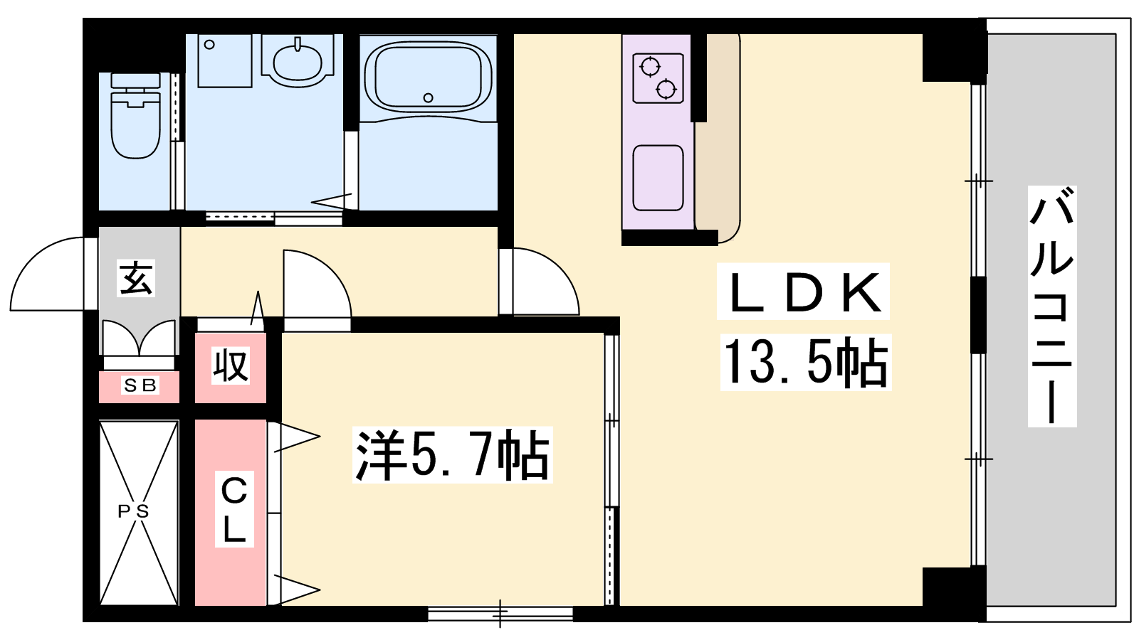 - LDK13.5帖、洋室5.7帖