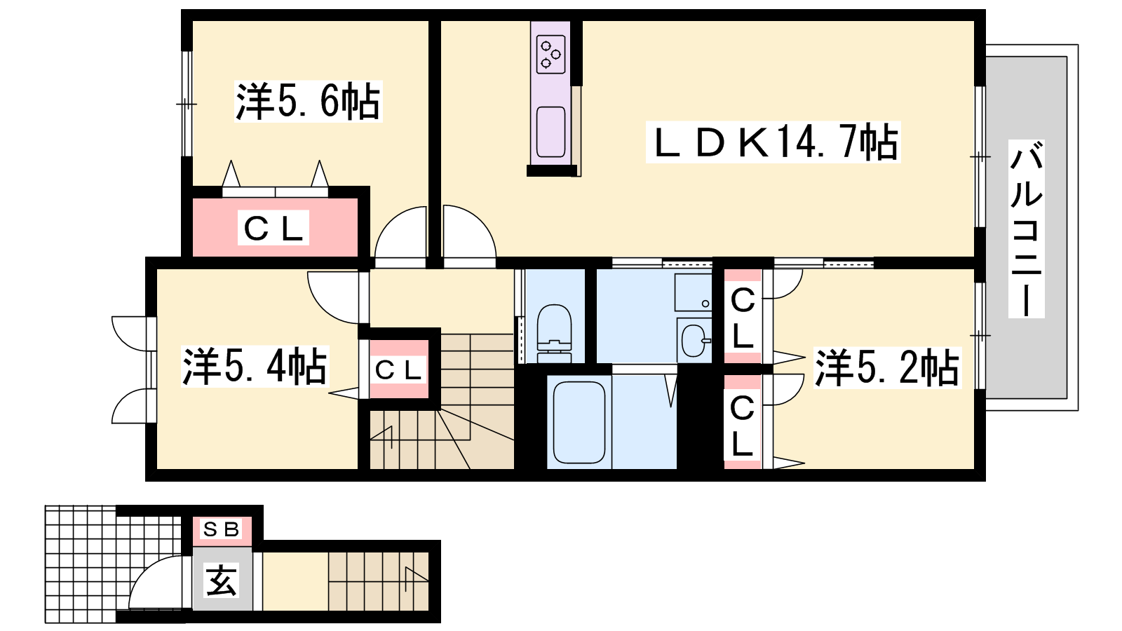 - LDK14.7帖、洋室5.6帖、洋室5.4帖、洋室5.2帖