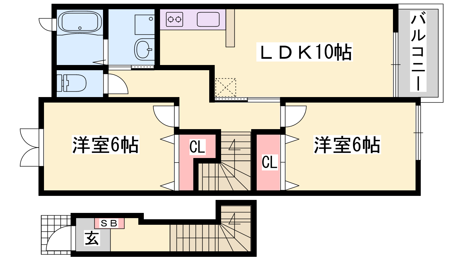 - LDK10帖、洋室6帖、洋室6帖