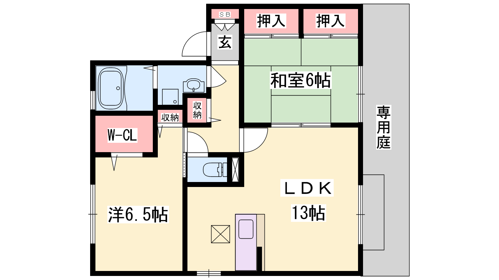 - LDK13帖、洋室6.5帖、和室6帖