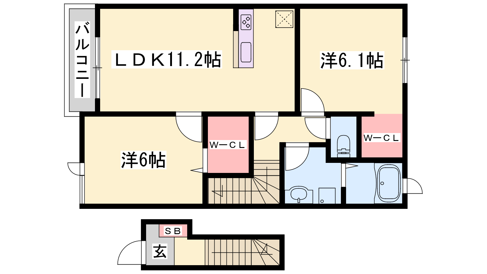 - LDK11.2帖、洋室6.1帖、洋室6帖