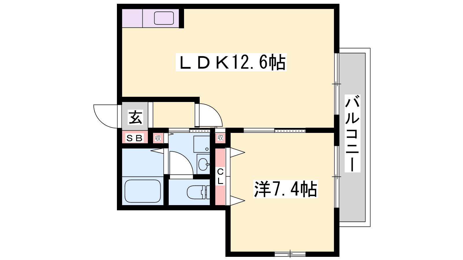 - LDK12.6帖、洋室7.4帖