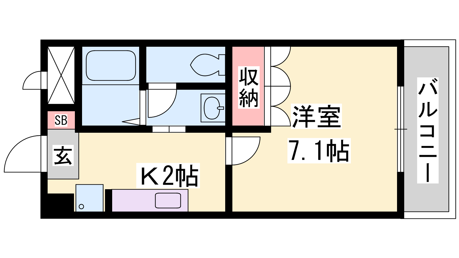 - K2帖、洋室7.1帖