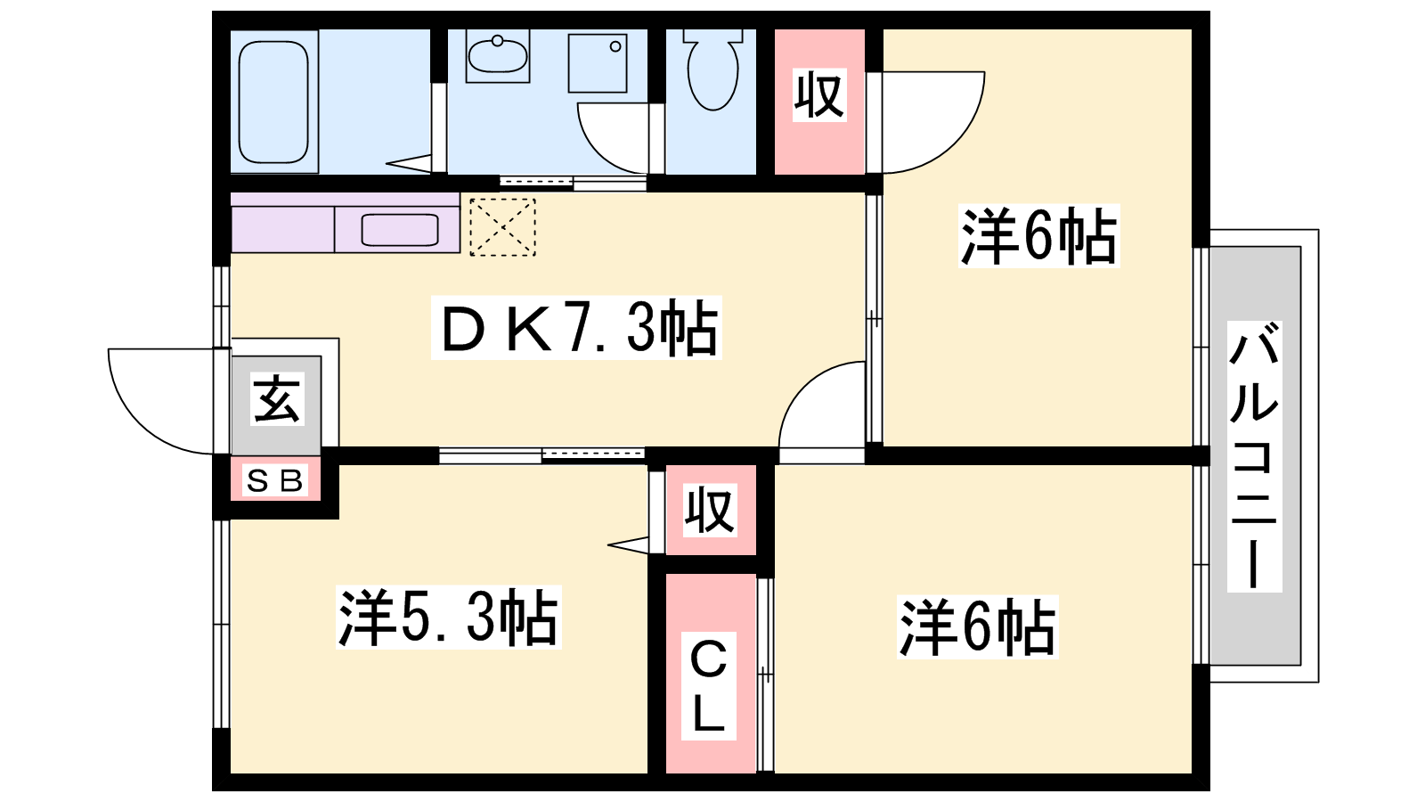 - DK7.3帖、洋室6帖、洋室5.3帖、洋室6帖