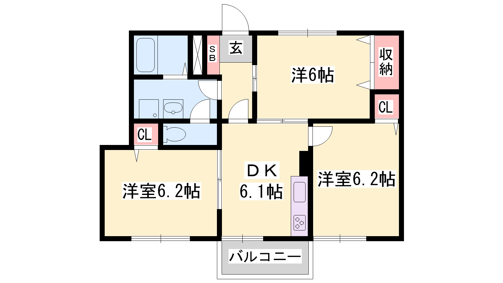 - DK6.1帖、洋室6.2帖、洋室6.2帖、洋室6帖