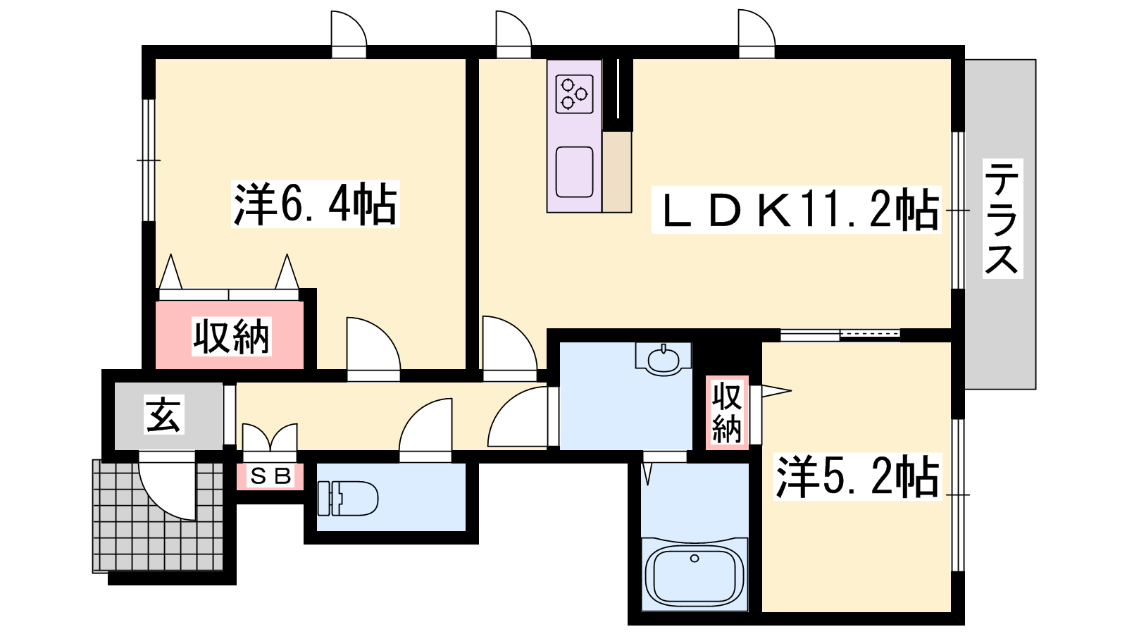 - LDK11.3帖、洋室6.4帖、洋室5.2帖
